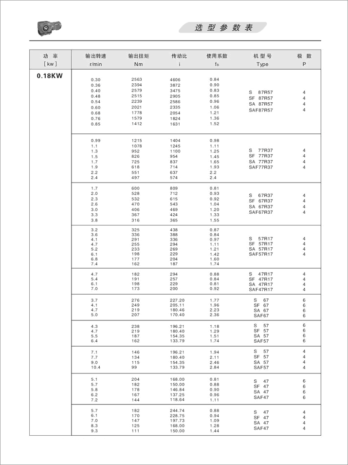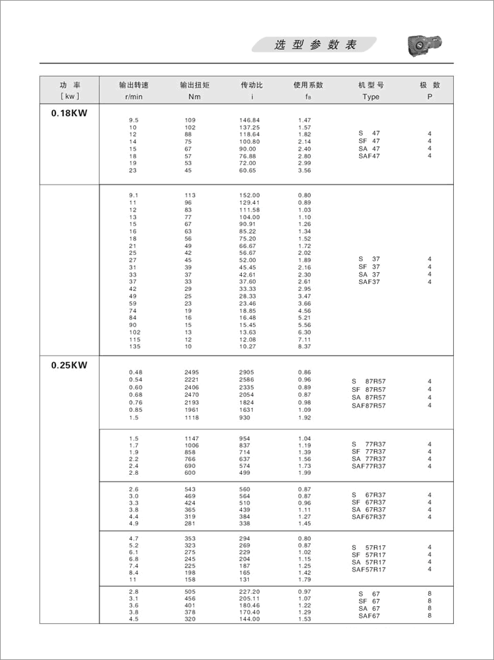 上一篇:S系列斜齒輪蝸桿減速機選型參數表0.25KW