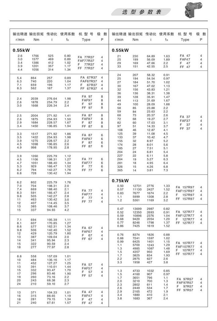 上一篇:F平行軸斜齒輪減速機選型參數表0.75KW